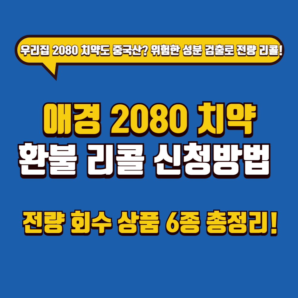 "우리 집 2080 치약도 중국산? 위험한 성분 검출로 전량 리콜!" 최근 애경 2080 치약 6종에서 사용 금지 성분 트리클로산이 검출되어 전국적 패닉이 일고 있습니다. 영수증 없이도 100% 환불받는 정확한 신청 방법과 대상 제품 확인법, 환불 절차까지 이 글 하나로 완벽 해결! 지금 바로 확인하고 안전 지키세요!