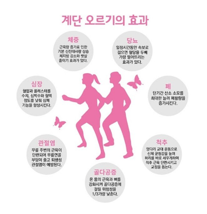 - 주 5일 이상, 하루 30-60분 계단 오르기