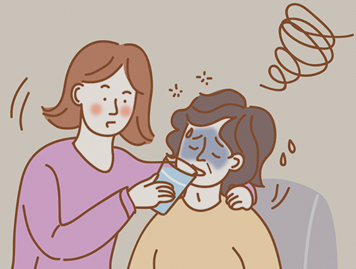 - 의식이 흐려지거나 쓰러질 것 같은 느낌이 들면 바로 누워 다리를 올립니다.